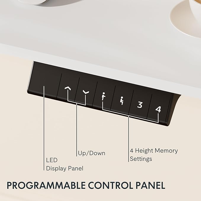 - 4 MEMORY PRESETS: Easily store and recall different height settings with our multifunctional memory system. Effortlessly switch between sitting and standing to reduce the risk of health issues like back and neck pain caused by prolonged sitting.