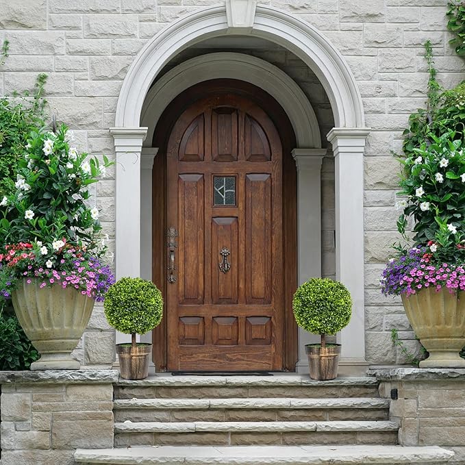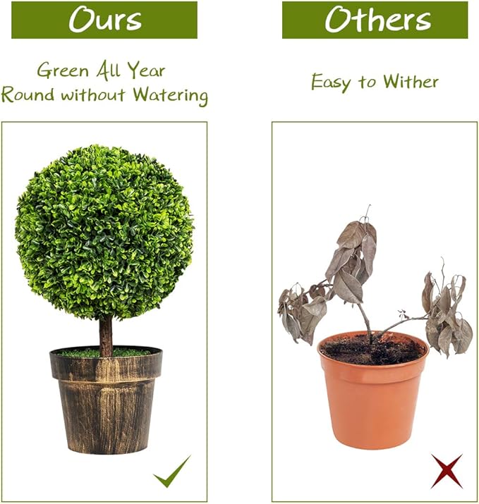 - 🌳 Easy to Maintain: Different from other real plants which need water and fertilizes, these 2 pcs artificial boxwood topiary trees do not need watering, pruning or sunlight, greatly saving your time and energy. And the lifelike and smooth leaves are easy to maintain with a wet rag.