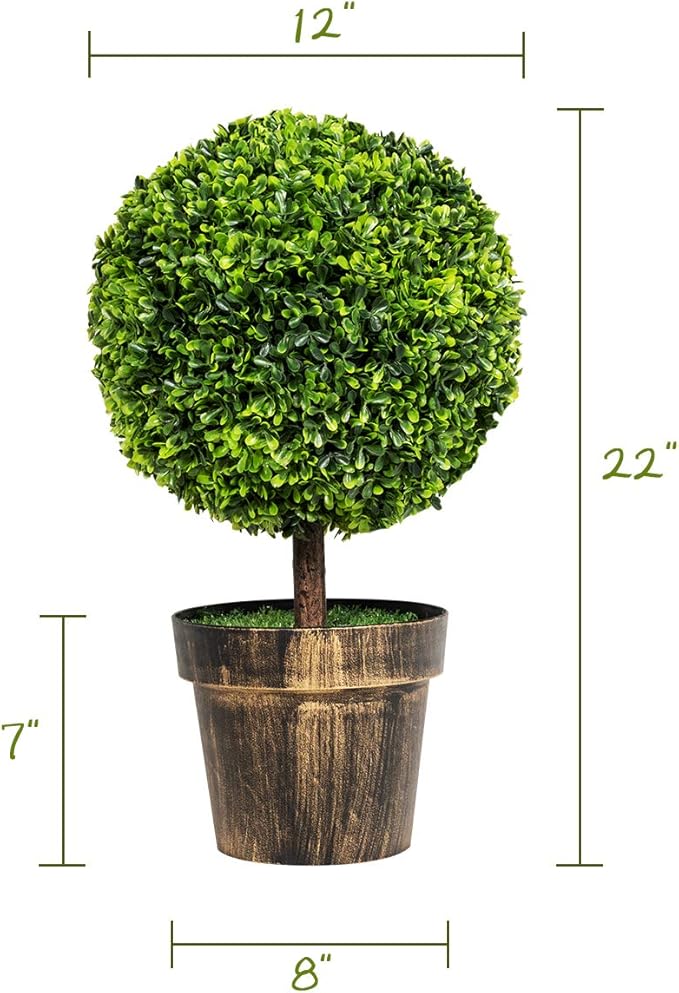 Goplus 22" Tall Artificial Boxwood Topiary Ball Tree, 2 Pack Faux Round Shrubs Bushes Decoration, Fake Potted Plants for Front Porch Indoor Outdoor Home Decor
