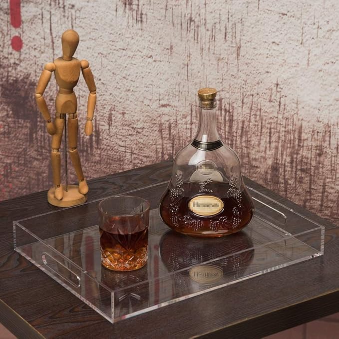 Clear Sturdy Acrylic Serving Tray with Handles-12x16Inch-Serving Coffee,Appetizer,Breakfast,Butler-Kitchen Countertop -Makeup Drawer Organizer-Vanity Table -Ottoman
