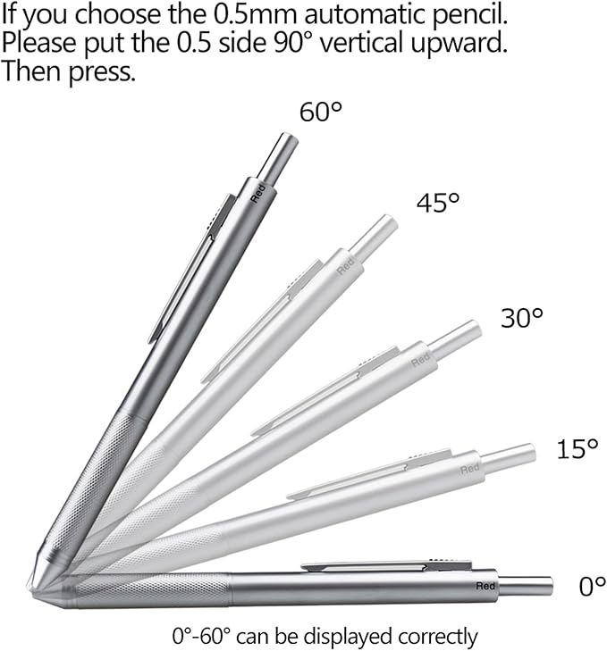 - 45° Instructions: If you choose the 0.5mm automatic pencil. Please put the 0.5 side 90° vertical upward. Then press