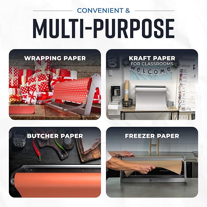 - Fits Most Standard Rolls: Designed to fit butcher paper, craft paper, or gift wrap rolls up to 24” wide and 9” in diameter (equivalent to a 1000ft roll on a 1" core). Perfect for home, commercial, or classroom use.