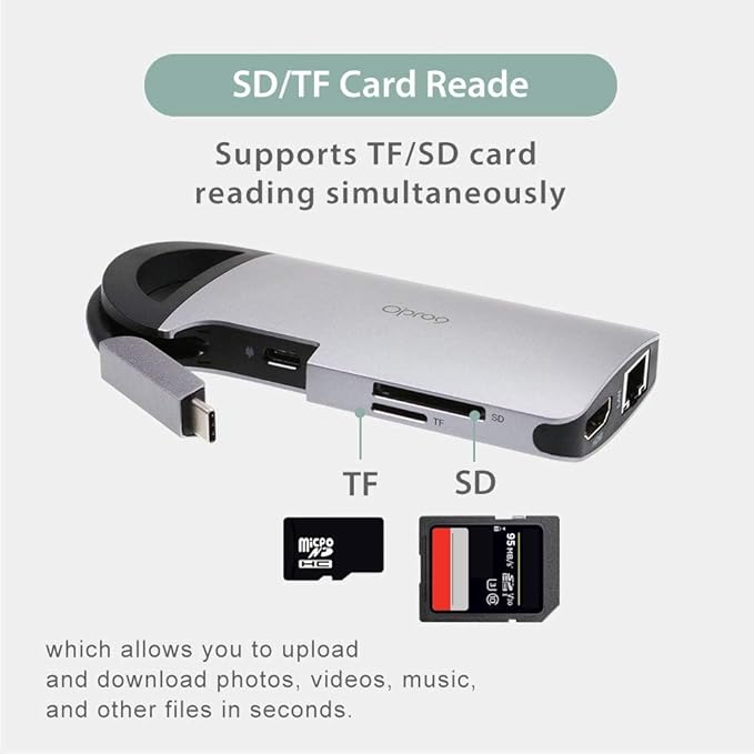 - 【Hub with Gigabit Ethernet & SD/TF Card Reader】Features speeds of up to 1000 Mbps over RJ45 Ethernet port, making it faster and more reliable than a wireless connection. Supports TF/SD card reading simultaneously, which allows you to upload and download photos, videos, music, and other files in seconds.