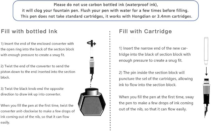 - It comes with a converter for bottled ink, No Ink included for safety in transit. You can purchase the Hongdian cartridges or bottled ink in our store.