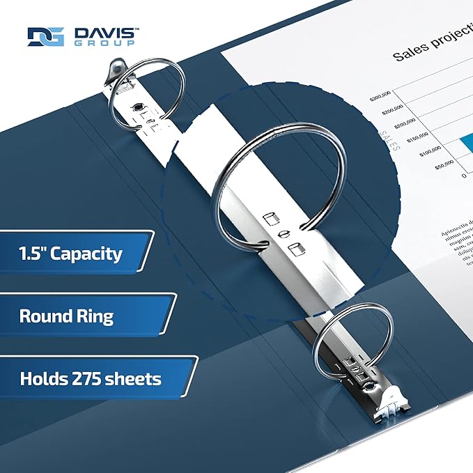 Premium Economy 6-Pack 3-Ring Binders for School or Office, Round-Ring Binders, 1.5 Inch, Navy Blue