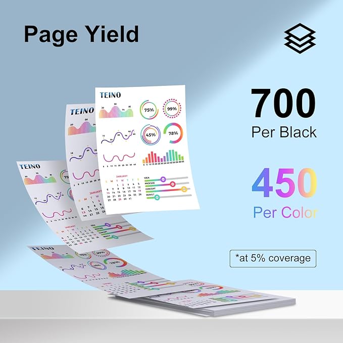 - TEINO ink cartridges display ink level real-time, deliver crisp, clear images and text. An ideal choice for home, office, school users looking for professional quality printing