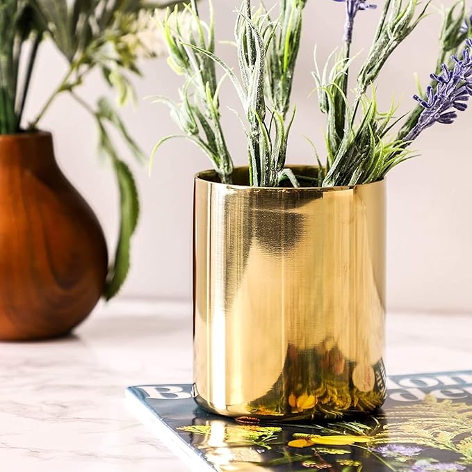 - Versatile Home Companion: Seamlessly transition this gold utensil holder into a chic gold makeup brush holder or a stylish toothbrush holder. Its refined design complements any decor, adding a touch of elegance to bathrooms and vanities alike
