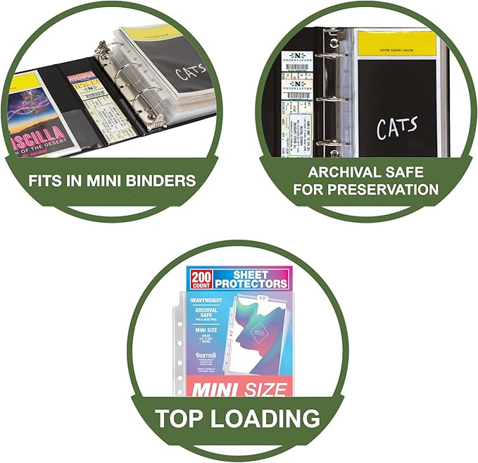 Samsill Mini Sheet Protectors 200 Pack, 5.5 x 8.5 Inch Page Protectors for Mini 3 Ring Binder, Heavy Duty, Clear Protector Sheets, 7 Hole, Top Loading, Acid Free