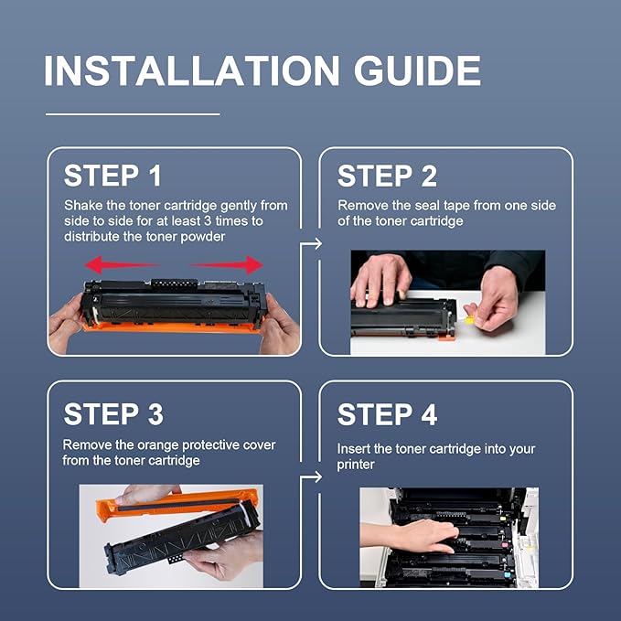 - 【Easy Installation and Quick Recognition】: Refined toner powder provides vibrant Colors and Rich Blacks. Resisting fading, smudging and blurring as well as bringing you reliable and resistant printouts. Shelf Life: 24-Month.
