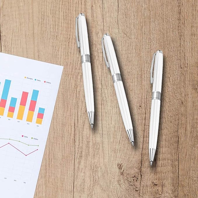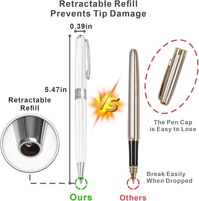 - Premium Black Ink Pen: Elevate your style with the professional pens featuring a sleek metal body in a stunning white finish; Perfect for men, flight attendants, police officers as uniform pen, or wedding guest books as guest pen; Measures 5.47" long with 0.39" diameter for a professional look