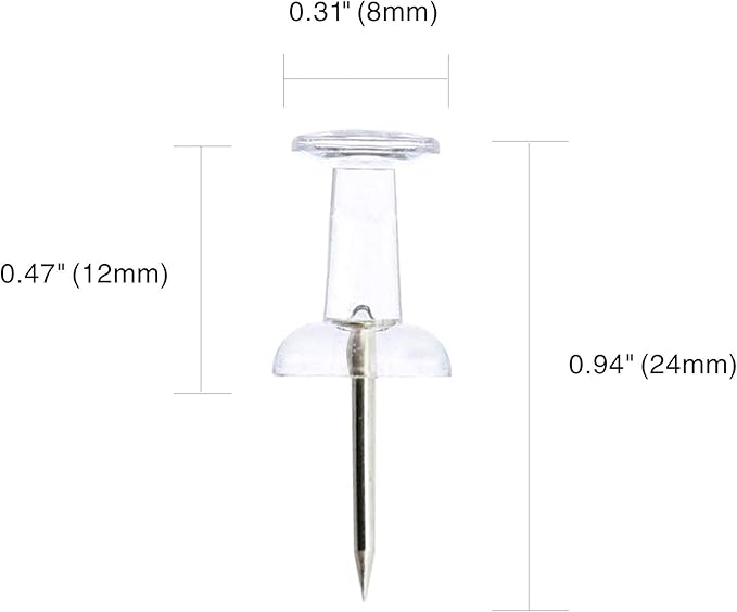 Clear Push Pins 600pcs Standard Thumb Tacks Steel Point Transparent Plastic Head Pins for Hanging Photo Posters Craft Marking Map Wall Cork Board
