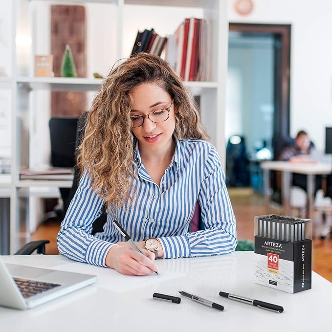 ARTEZA Rollerball Pens, Pack of 40, 0.5mm Black Liquid Ink Pens for Bullet Journaling, Fine Point Rollerball, Office Supplies for Writing, Taking Notes & Sketching