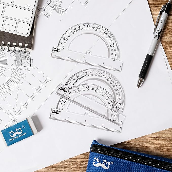 Mr. Pen- Small Protractor, 4 Inch, Pack of 3, Protractor Ruler, Drafting Tools, Math Geometry, School Supplies
