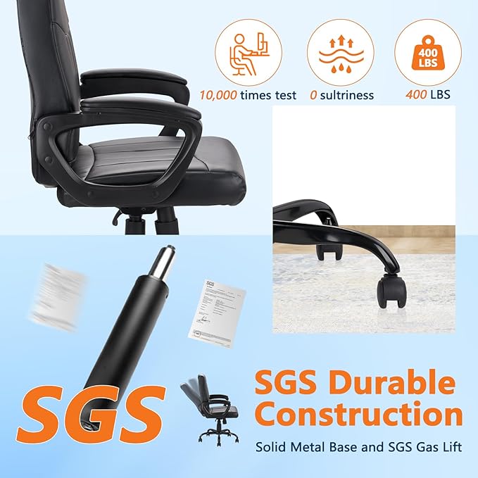 - Executive Swivel Chair -- Covered by the smooth, soft-touch leather, this premium bonded leather task chair with padded back, seat cushion and comfy armrest, offers great comfort and support at a reasonable price. ❤️❤️【𝐍𝐎𝐓𝐄】𝐓𝐡𝐢𝐬 𝐜𝐡𝐚𝐢𝐫 𝐢𝐬 𝐝𝐞𝐬𝐢𝐠𝐧𝐞𝐝 𝐭𝐨 𝐛𝐞 𝐩𝐚𝐜𝐤𝐚𝐠𝐞𝐝 𝐬𝐩𝐞𝐜𝐢𝐚𝐥𝐥𝐲. 𝐒𝐨𝐦𝐞 𝐜𝐡𝐚𝐢𝐫 𝐩𝐚𝐫𝐭𝐬 𝐚𝐫𝐞 𝐩𝐚𝐜𝐤𝐚𝐠𝐞𝐝 𝐢𝐧 𝐭𝐡𝐞 𝐛𝐚𝐜𝐤𝐫𝐞𝐬𝐭 𝐢𝐧𝐭𝐞𝐫𝐢𝐨𝐫. If you have any question, Do not hesitate to contact our customer service team for help!