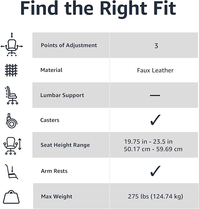Amazon Basics Classic Puresoft PU Padded Mid-Back Height Adjustable Office Computer Desk Chair with Armrest, 26"D x 23.75"W x 42"H, Cream