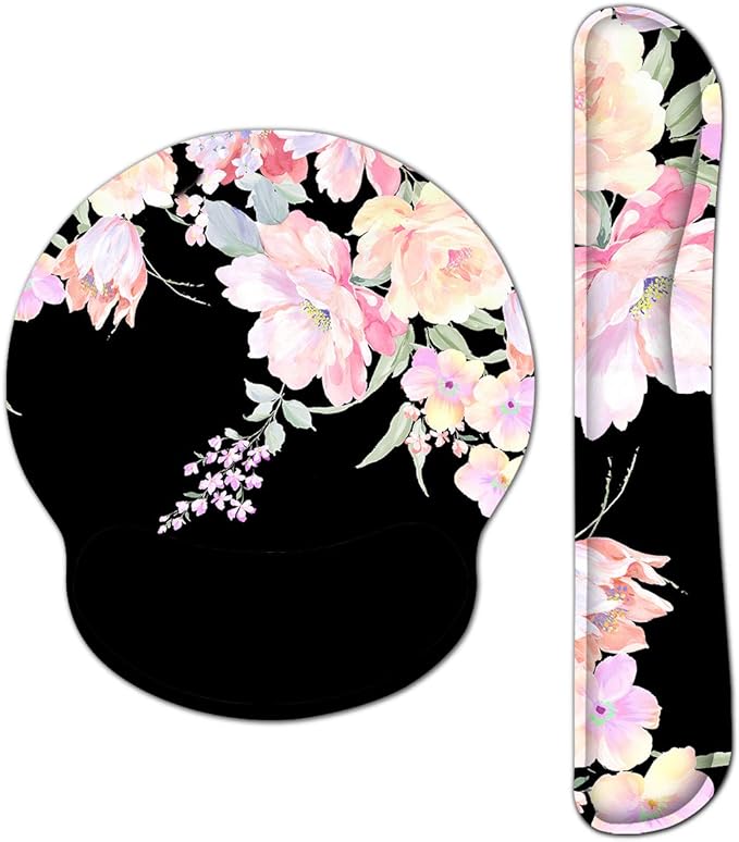 RICHEN Keyboard Wrist Rest and Mouse Pad with Wrist Support, Memory Foam Set for Computer/Laptop/Mac,Gaming and Office, Sturdy & Comfortable & Lightweight for Easy Typing & Pain Relief (Flowers)