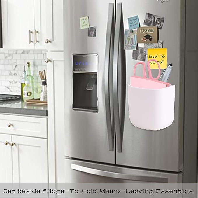 Pencil Holder - Self-Adhesive Wall Mount Pen Cup,Marker Pot,Writing Utensil Storage Organizer for Fridge,Locker,Whiteboard,home and office - White - 2Pcs/Set