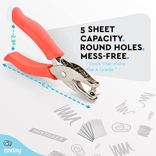 - ✓Design: Single Hole Punch features rubber grip for comfort, The punch produces hole that cuts crisply and cleanly, which accommodate most binding devices, Paper chip holder makes clean-up fast and easy, Traditional design is ideal for punching simple shapes in craft projects for both functional and decorative purposes