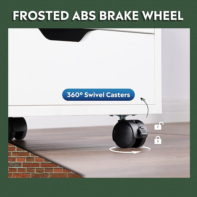 - EASY TO MOVE: Rolling on four wheels, this printer stand can be moved and adjusted in position freely. Built-in brakes on front two casters to keep it in position and add stability.
