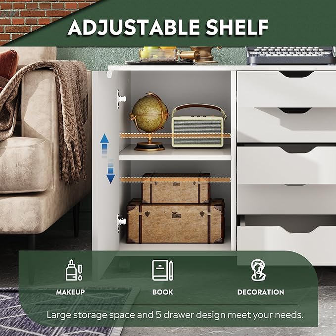 - MULTIFUNCTIONAL & STYLISH: This chest of drawers with storage spaces, 5 drawers storage cabinet can perfectly match with any color schemes and tones, simple design and practicality is perfect for home office, study room, living room.