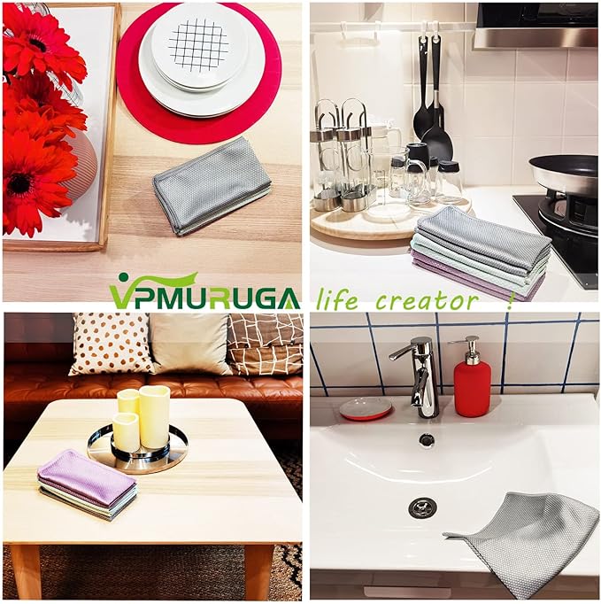 - VPMURUGA premium Easy Clean Microfiber cleaning cloths are Nano streak free miracle cleaning cloths reusable,Large and Thick. High quality,300 Wash Guarantee. Size 16inch X 16inch. Counts: Pack of 6. Color: 6 Purple.