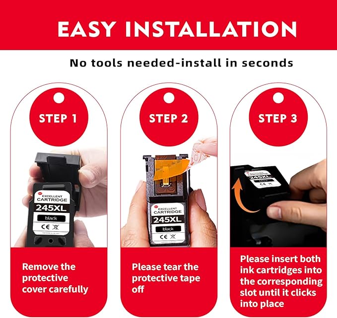 - Wide Printer Compatibility: Replacement for Canon Canon 245XL Black Ink, 245XL Ink Cartridges, fit for Canon 243 Black Ink, PG-243 243XL PG-245,Compatible for Canon MX490 MX492 MG2500 MG2522 MG2525 MG3022 MG2920 TS3100 TS3122 TS3300 TS3322 TR4500 TR4522 TR4520 printers (full list in description). Ensures seamless installation with smart chip recognition, eliminating compatibility errors for home offices and students