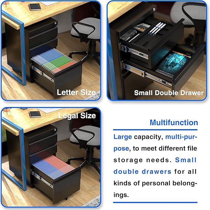 - 【Security Assurance】: This 3 drawer mobile filing cabinet comes with a lock to ensure the safety and security of your important documents and confidential information.