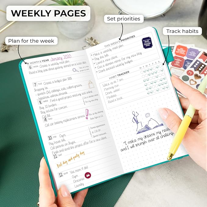 - PORTABLE POCKET SIZE - Measuring just 3.7x6.7 inches, this weekly pocket planner can easily fit into any purse. This life planner lasts a whole year, and includes monthly calendars, weekly pages, habit tracker, and effective goal-setting tools.
