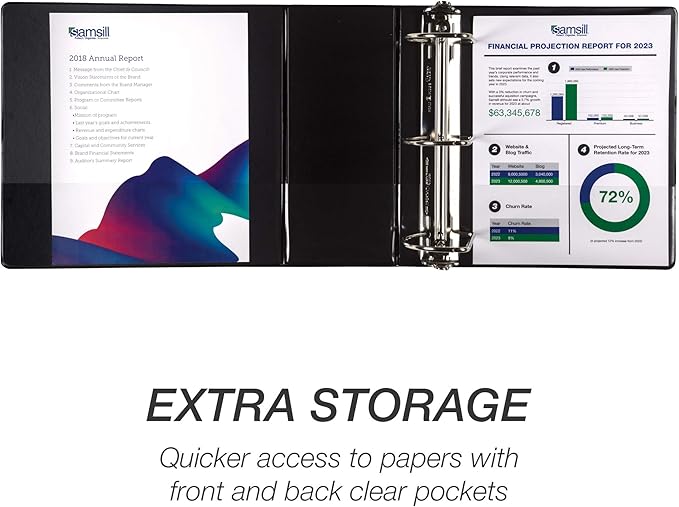 - Professional Look: Designed to impress during presentations and look great on a shelf, our 3-ring binder features back-lid-mounted D-shaped binder rings for a rivetless spine