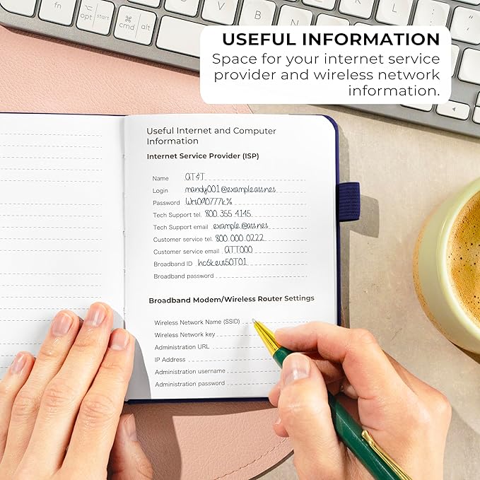 - POCKET SIZE & PREMIUM QUALITY - This internet address and password logbook with tabs comes in pocket size (4.0x5.5 inches). The password notebook has an eco-leahter hardcover, elastic band, pen loop, bookmark, pocket for notes, and thick 120gsm paper.