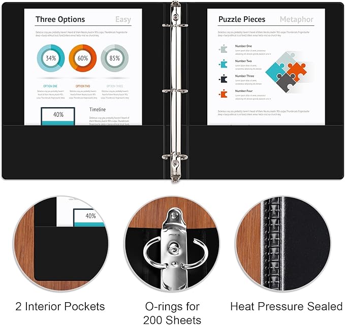 - Multipocket:3 ring binder with 2 interior pockets for storing business cards, sticky note and memo papers.