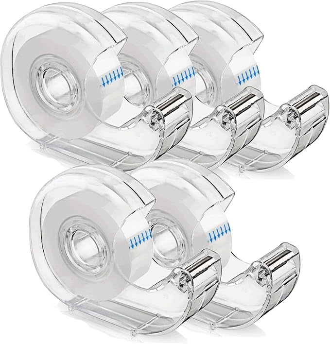- 【Size and Package 】Refillable dispenser size:4.2*1*3 Inch,5PACK include 5 rolls Clear Tape,the tape size:0.7*1300 Inch