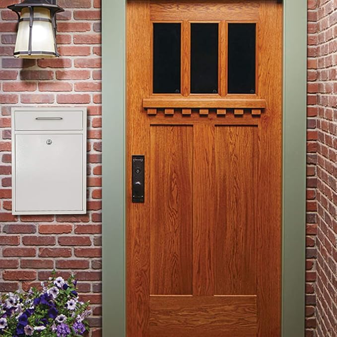 KYODOLED Steel Key Lock Mail Boxes Outdoor, Locking Wall Mount Mailbox, Security Key Drop Box, Collection Boxes,16.2H x 11.22L x 4.72W Inches, White X Large