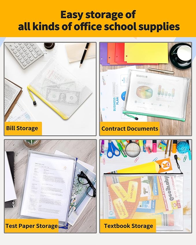 - DURABLE & PORTABLE: SUNEE zipper file bags are made of thick vinyl material, water-resistant, moisture-resistant. Each metal zipper is equipped with a rope loop, which is strong and durable. It can be used as a hanging ring and ready to hang.