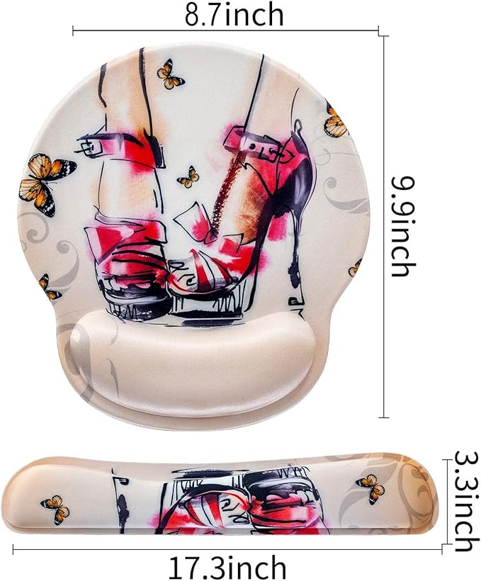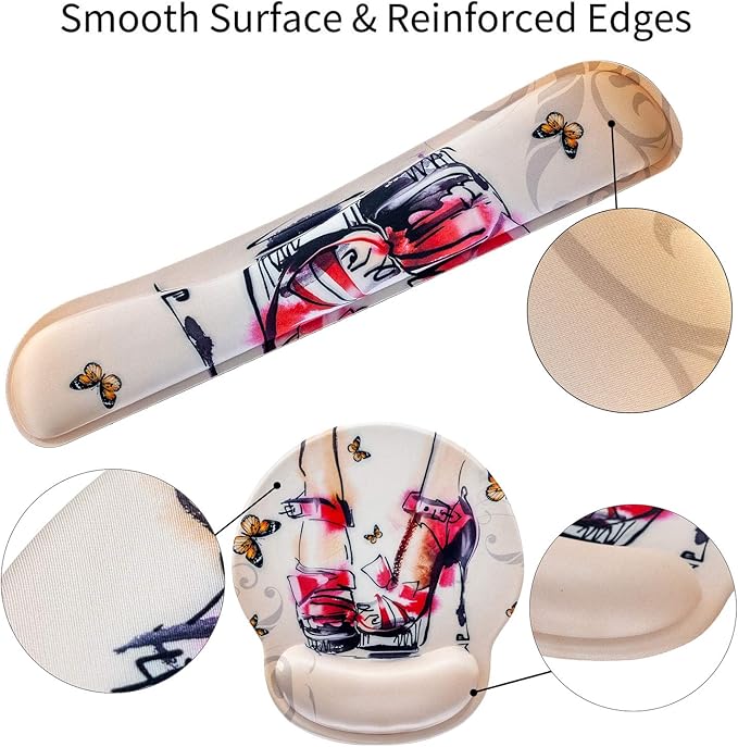 Ergonomic Keyboard Mouse Pad Wrist Rest Support Set for Laptop/Computer/Desktop,Memory Foam Hand Rest Wrist Cushion for Gaming/Office,Lightweight Comfortable & Pain Relief (Red High Heels)