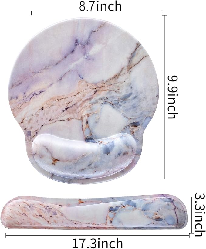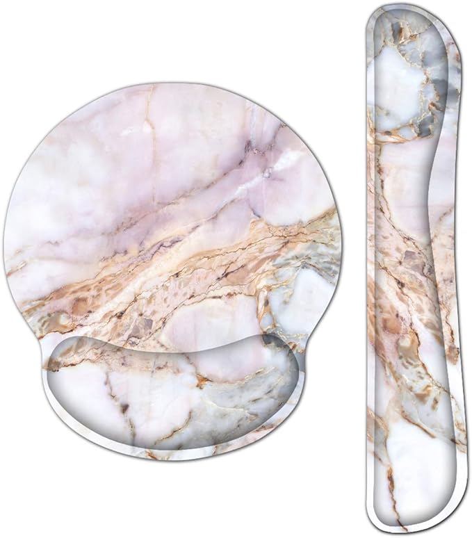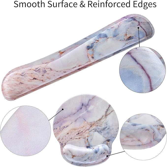 RICHEN Keyboard Wrist Rest and Mouse Pad with Wrist Support, Memory Foam Set for Gaming and Office, Comfortable & Lightweight for Easy Typing & Pain Relief (Marble2)