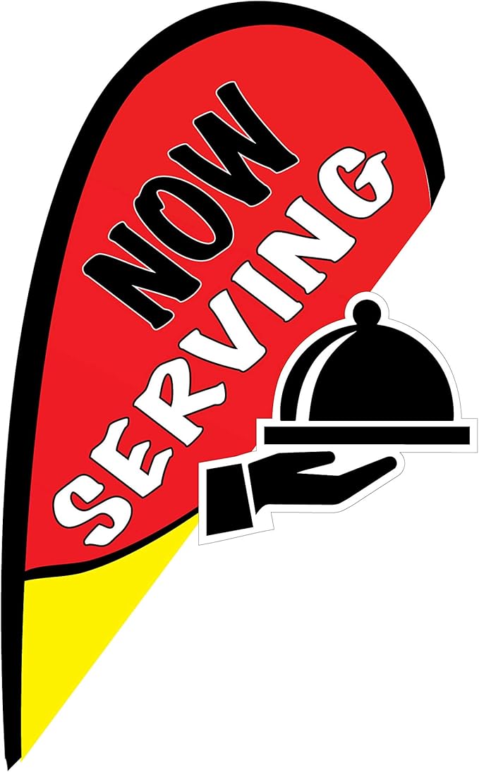 Indoor Outdoor Double Sided Window Flag for Business Sign Drive Thru, Delivery, Pick Up, Essential Business and We are Open Small 3D Flag Kit for Small Business (Serving)