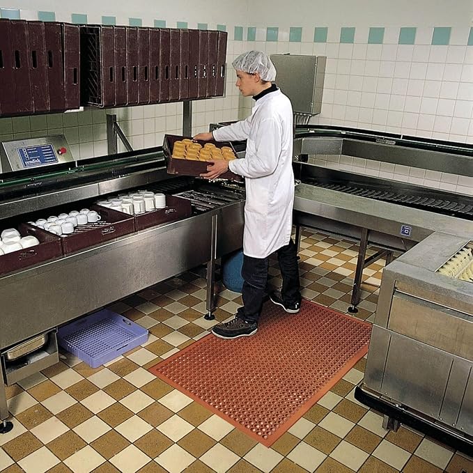- Increased Workplace Safety - Our anti-fatigue rubber matting with molded-in beveled edges provides a smooth transition from the mat to the floor, ideal for use as commercial kitchen mats