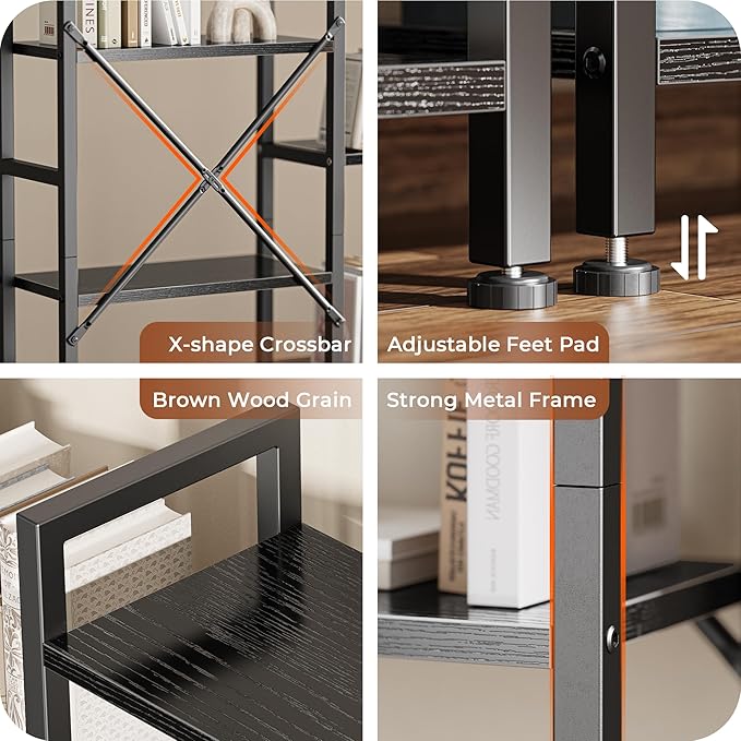 - 【STABLE AND DURABLE】Crafted from steel frame and particle board, this wide bookshelf has high stability and long service life, each shelf can hold up to 70 lbs.The bookshelves come with anti-tilt brackets so you can fasten them to the wall for support.