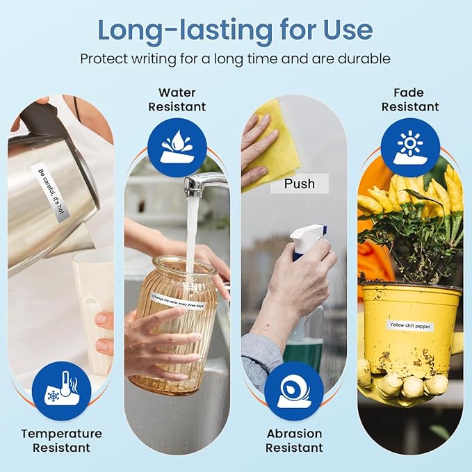 - Material : Durable polyester-coated labeling tape (plastic)