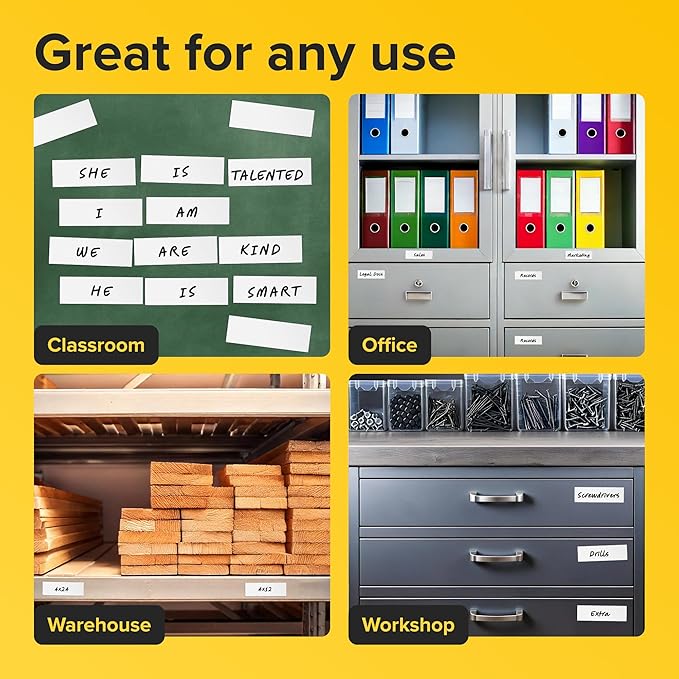 - EASY TO INSTALL and REUSABLE writable magnetic accents stickers. Write on them with a dry erase marker, wipe them off and use them again. Dry erase magnetic tape use for labeling storage shelves, labeling cabinets, whiteboards, magnet labels on the refrigerator, toolboxes, teaching aids, message boards, stockroom shelf labels, menu boards, planning boards, file cabinets, refrigerators, retail signs, and every other magnetic surface