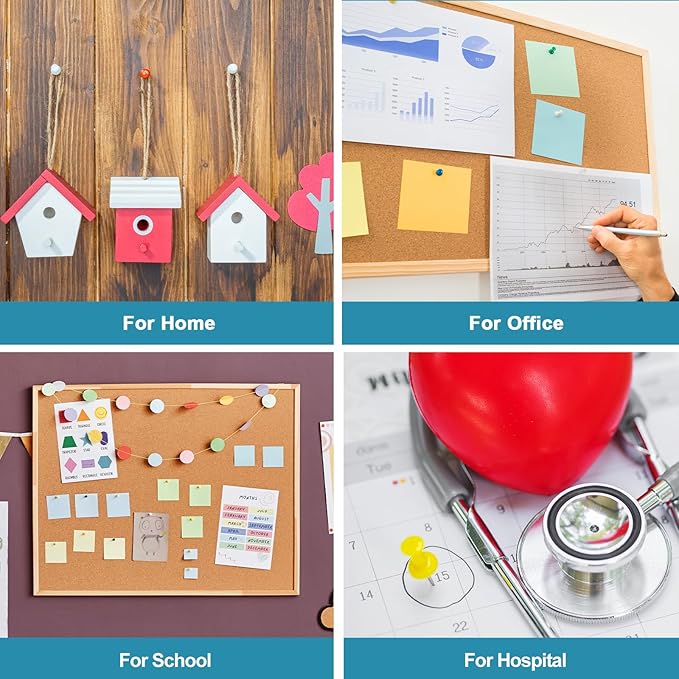 - Sturdy & Durable: Thumb tacks is made of high-quality plastic and durable nickel-plated steel, which is sharp and durable, and is not easy to bend or break. The end of the push pin is sturdy and can be easily inserted into maps, bulletin boards, cork boards, foam boards, and paper boards