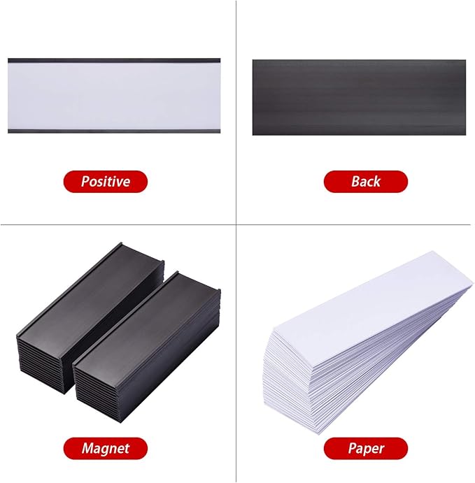 - Easy to use: write on the included paper strip, slide in the paper insert and the transparent protective film, stick the magnetic label holder to clean and flat surface, saving time and making reposition easier compared with traditional adhesive labels