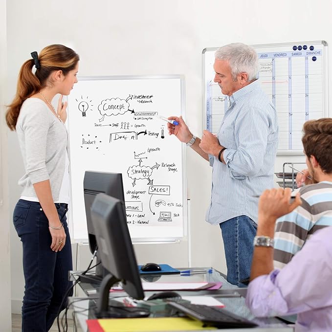 - [High-quality Last A Long Lifetime]: Our double-sided magnetic dry erase board with aluminum frame and strong ABS corner, and the sturdy rolling stand is made of rust-protective coating iron. Meanwhile, 4pcs locked wheels are 2 inches in diameter, it can support appox 150lbs, which enough to support the weight of the entire whiteboard. Strong castor lock coupled with the stopper board design, provides good balance while you are writing on the board, no wobble or shaking.