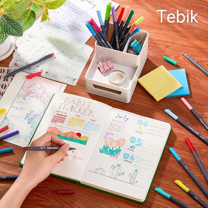 - 0.38mm Extra Fine Tip for Details: Our 0.38mm fine-tipped pens are great for creating a colorful journal, writing smoothly. We specifically designed them to contain the ink to the paper on which you are drawing, so the ink you put on one page won’t bleed through to the next in your journal unless the paper you are using is particularly thin.