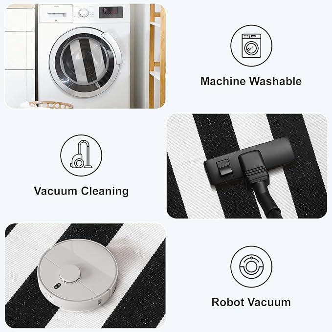 - Easy to Clean: Machine wash, hand wash, and use vaccum cleaner, don't put it in the dryer, not shpink and loose shape. Thick and soft black and white rug is resistant to outdoor elements, keeps its vibrant color