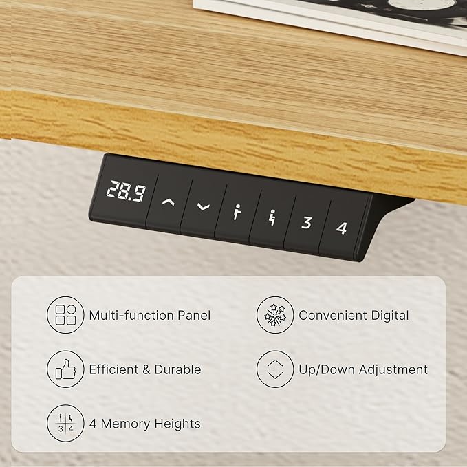 - 4 MEMORY BUTTONS: Easily switch between sitting and standing positions with our 6-button digital controller that features 4 programmable memory presets. The motorized height-adjustable system adjusts smoothly from 28.1β to 45.7β, and the motor runs quietly at less than 50 dB.