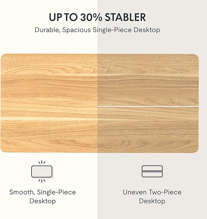 - AMPLE WHOLE-PIECE DESKTOP: With its one piece eco-friendly desktop, this standing desk provides plenty of room for your computer setup, documents, and accessories, creating a well-organized and productive work environment. Due to hand measurements, desktop dimensions may vary slightly by 0 to 1β.