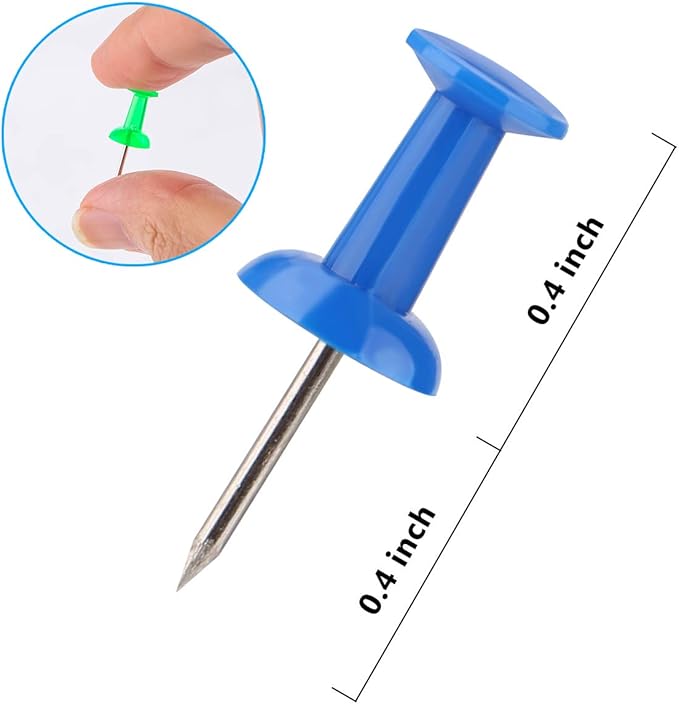 - Standard size push pins approx 1 inch, with multicolored pastic head and steel needle point