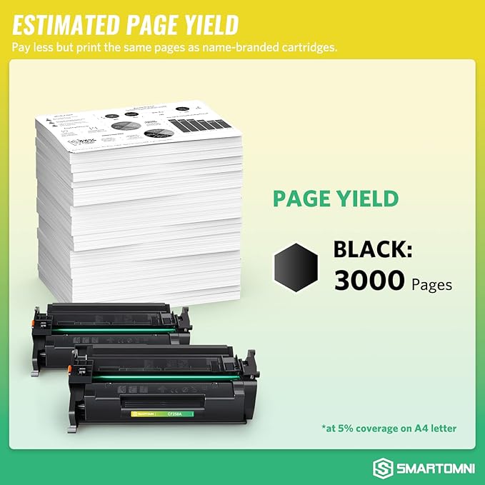 - Total 6,000 pages, each black toner can print up to 3,000 pages at 5% coverage of A4 Letter.